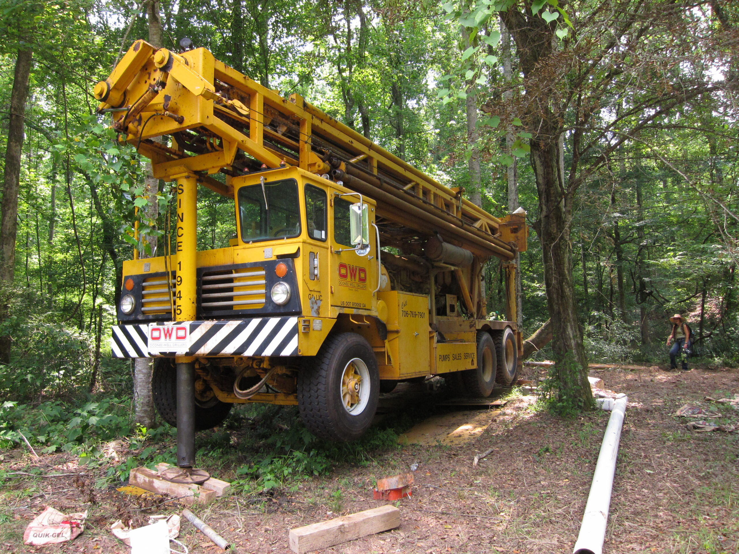 Drilled primary well site with Oconee Well Drillers. Well made 2-3 gallons at 325 feet, went to 600 feet, no additional water. We will have to try fracturing the well to see if we can connect this very expensive hole in the ground with the groundwater in natural occurring fractures. It might work; it might not. The bottom line is that we need more water to run the nursery.
