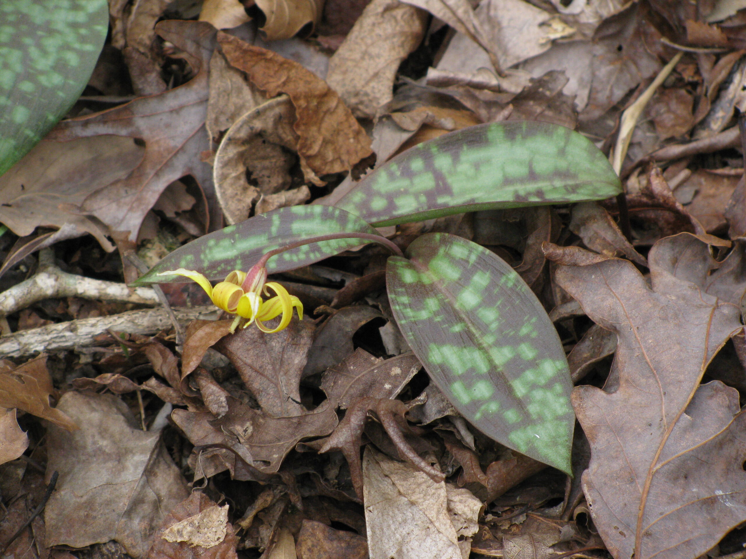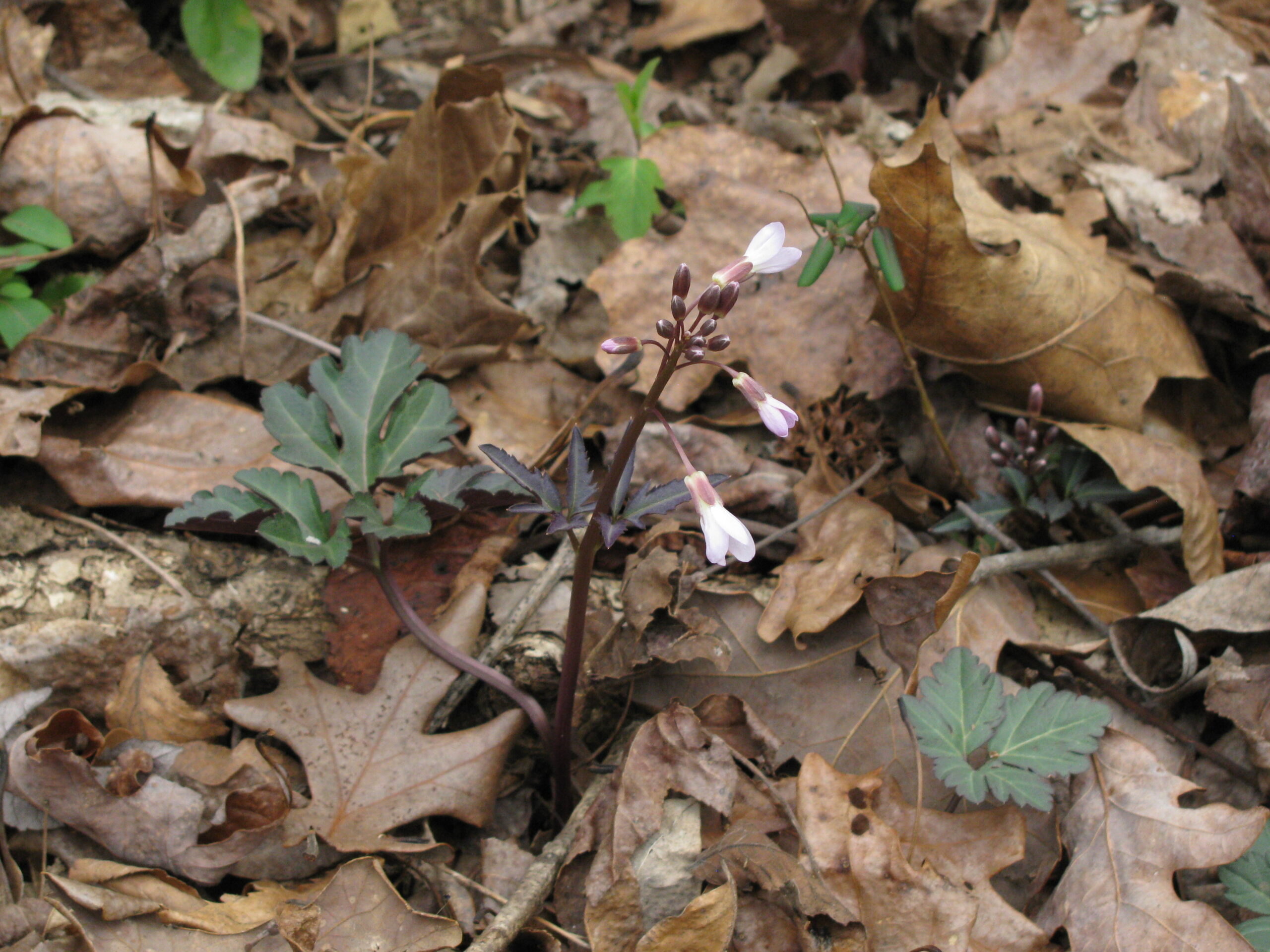 Speaking of interesting leaves: a Toothwort (Cardamine diphylla) starting to bloom.