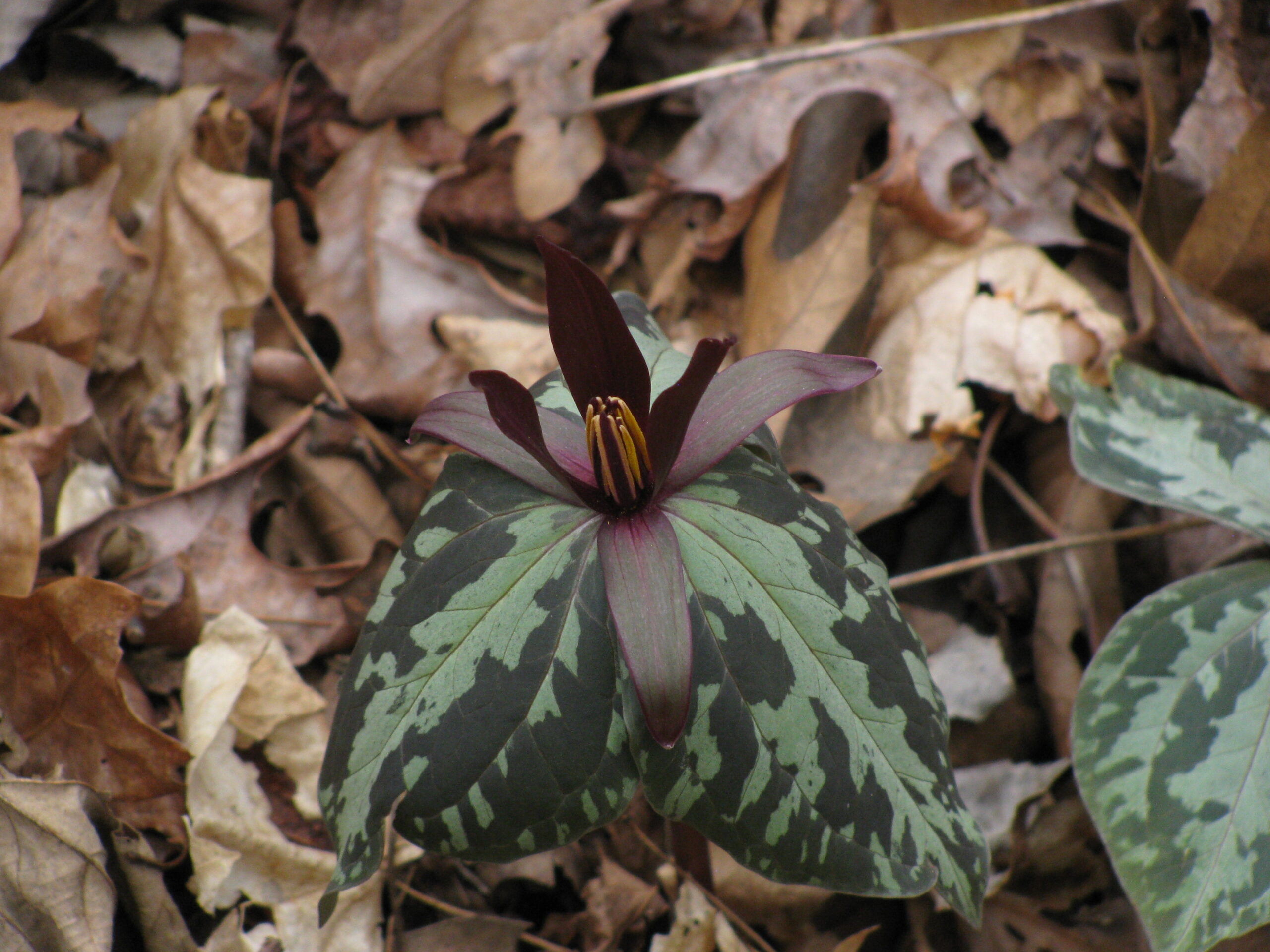 The trilliums (Trillium cuneatum) are still not quite ready to bloom, but there are so many more leafed out than when I went last month. It’s going to be quite a show soon.