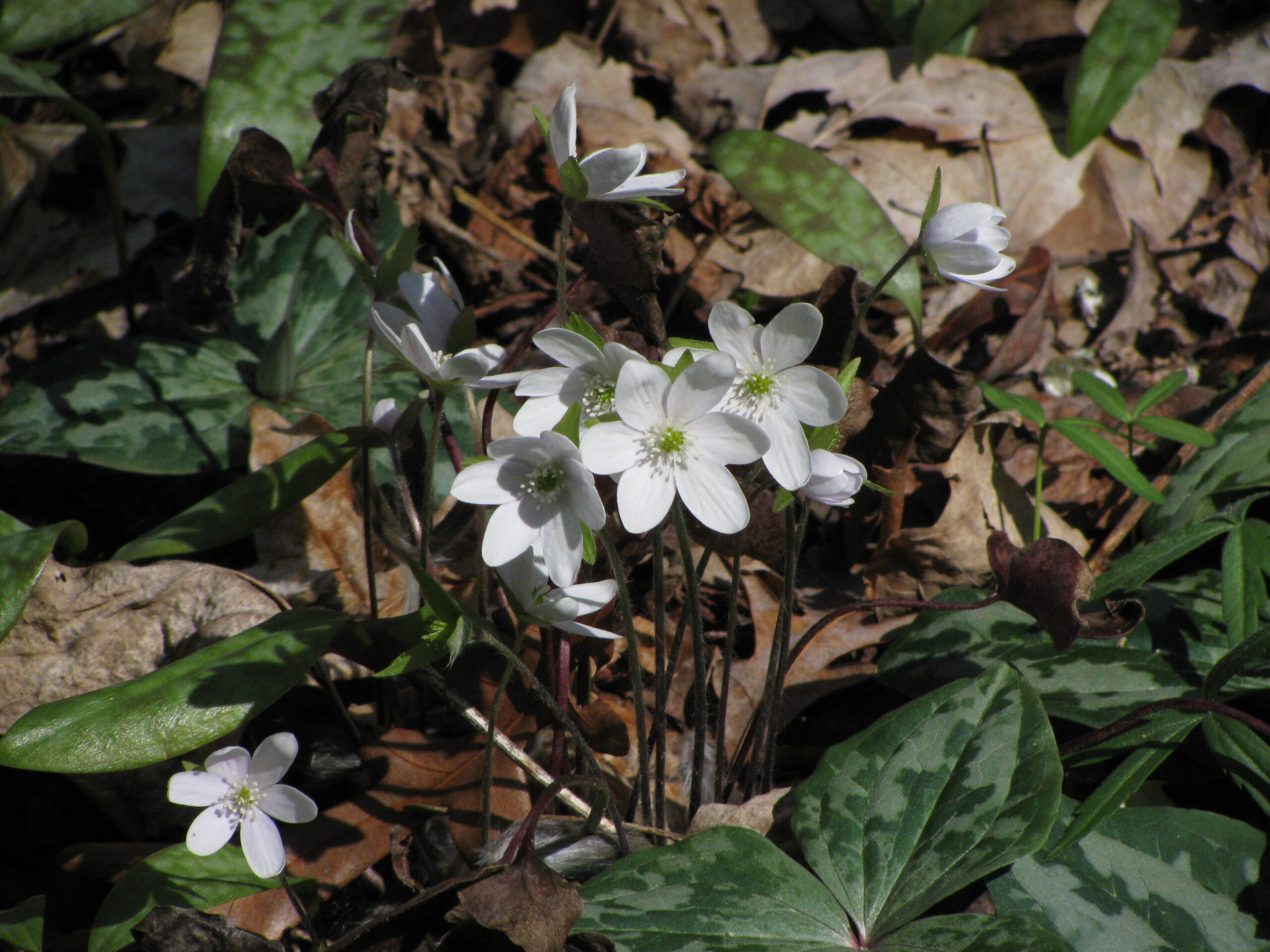 Plenty of Liverworts (Hepatica acutiloba) were blooming amongst the leaves of Trilliums.