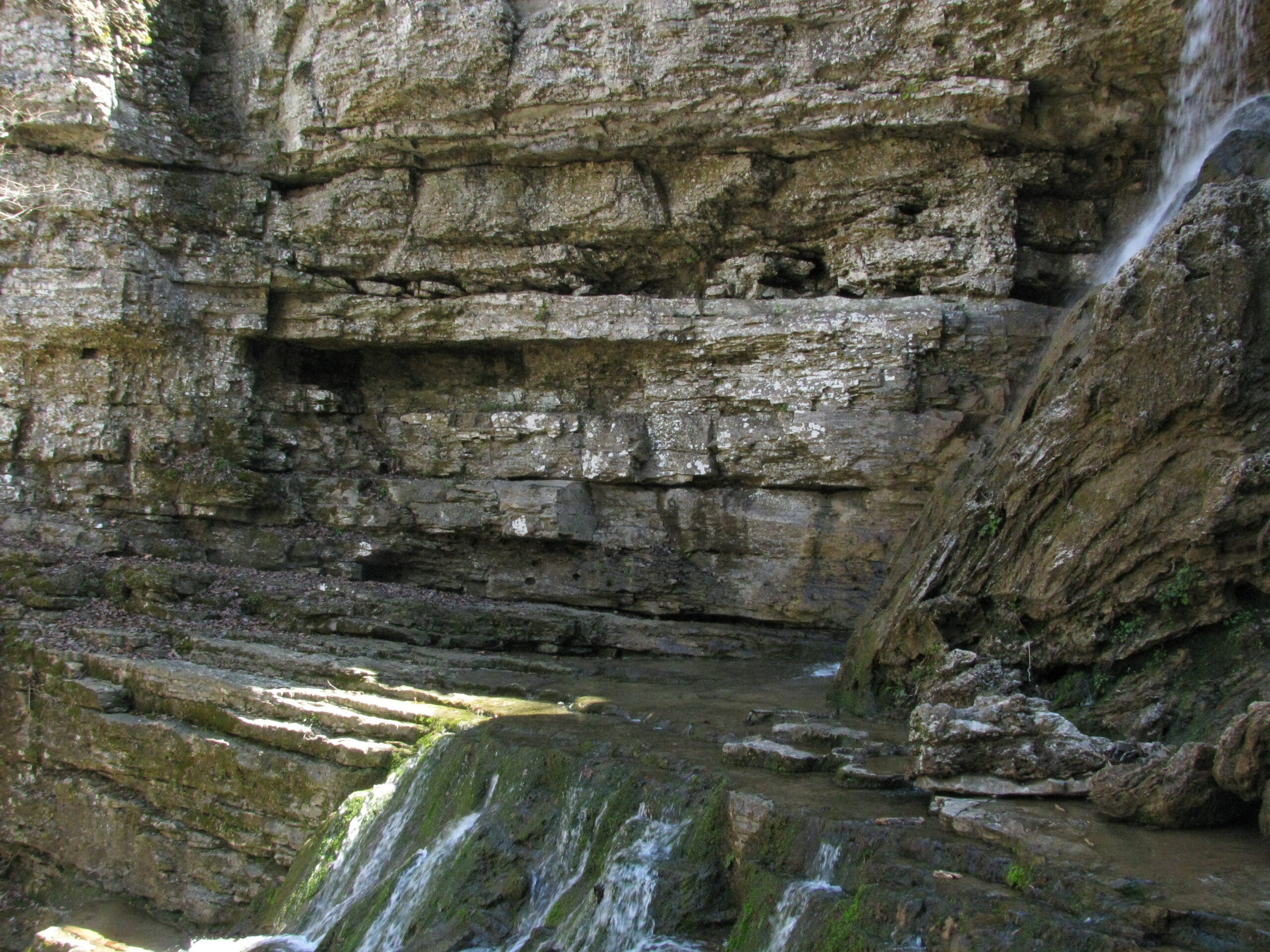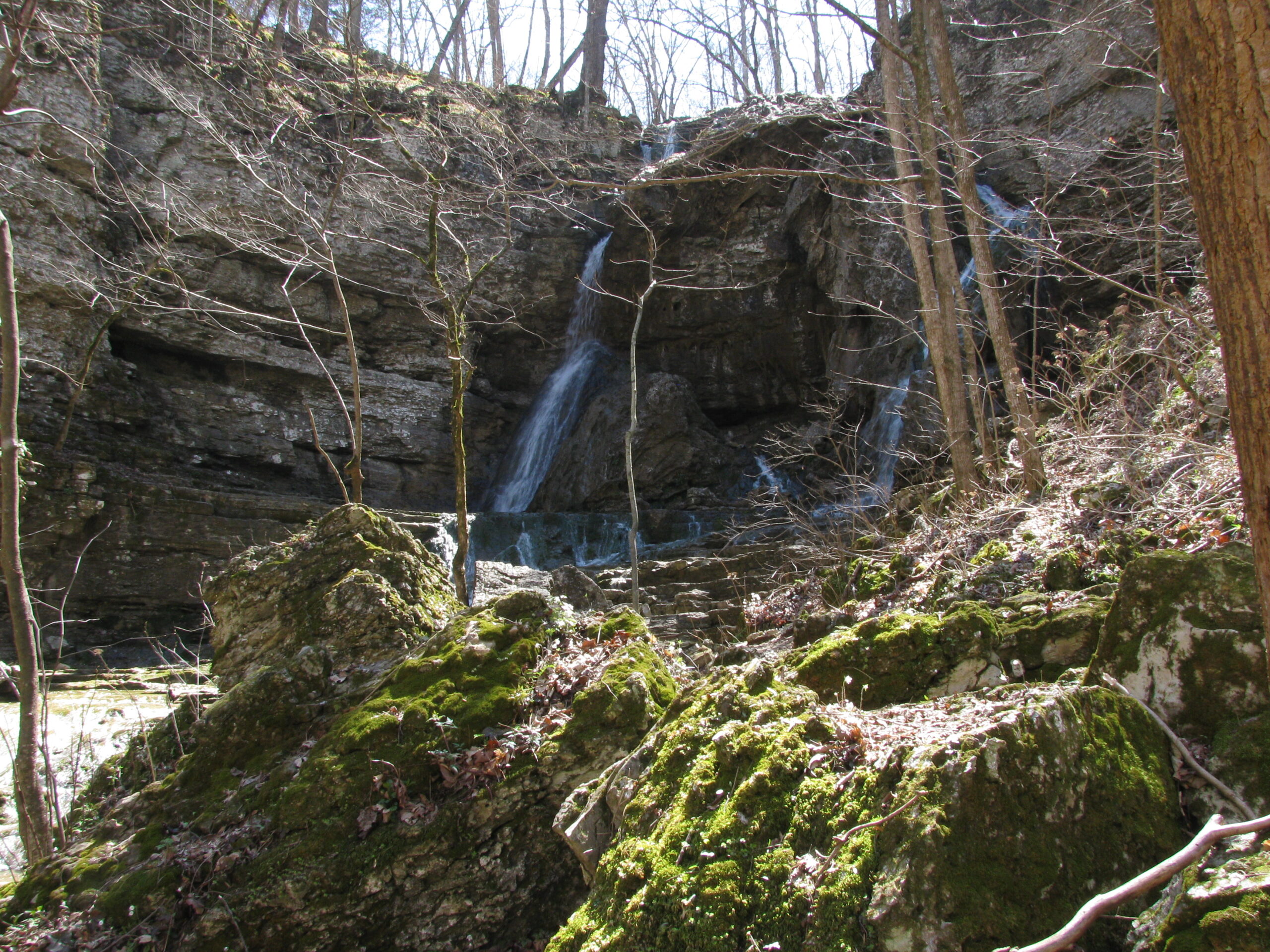 The culmination of the half mile or so after the boardwalk ends is the waterfalls. The limestone/sandstone geology of the area gives it an interesting stepped/cascade form.